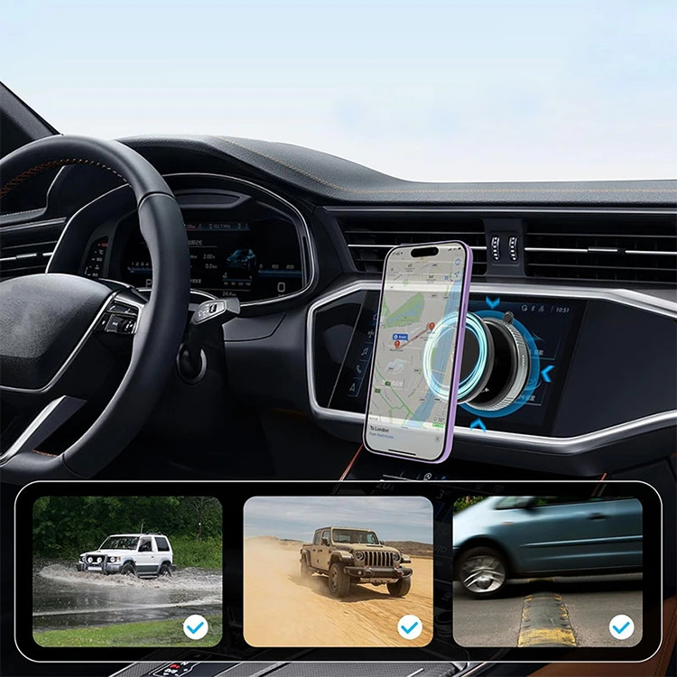 फराकिलो उपकरण अनुकूलता: हाम्रो कार फोन माउन्ट नवीनतम आईफोन मोडेलहरू (16/15/14/13/12) र सबै MagSafe-कम्प्याटिबल उपकरणहरूसँग उपयुक्त छ। गैर-MagSafe उपकरणहरूको लागि, अतिरिक्त पकडको लागि उच्च-शक्तिको चुम्बकीय रिंग समावेश गरिएको छ। फोन केसको साथ वा बिना, तपाईंको फोन एकल हातले तुरुन्तै संलग्न हुन्छ। अधिकांश कार मोडेलहरूसँग उपयुक्त, यो अनुकूलित कार फोन माउन्टले आधुनिक ड्राइभरहरूको लागि सुरक्षित र सहज स्थापना प्रदान गर्दछ।