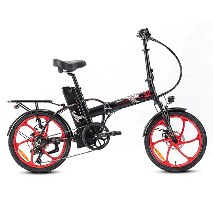 सुरुचिपूर्ण र शक्तिशाली पाङ्ग्रा डिजाइन: फोल्डिङ इलेक्ट्रिक बाइकले बोल्ड प्रोफाइल भएका रातो, पाँच-स्पोक एलोय ह्वीलहरू समावेश गर्दछ। यी पाङ्ग्राहरू शैली र पावर दुवैका लागि हुन्, सहज र सुरक्षित ब्रेकिङ कार्यसम्पादनको लागि भरपर्दो डिस्क ब्रेक प्रणालीको विशेषता।